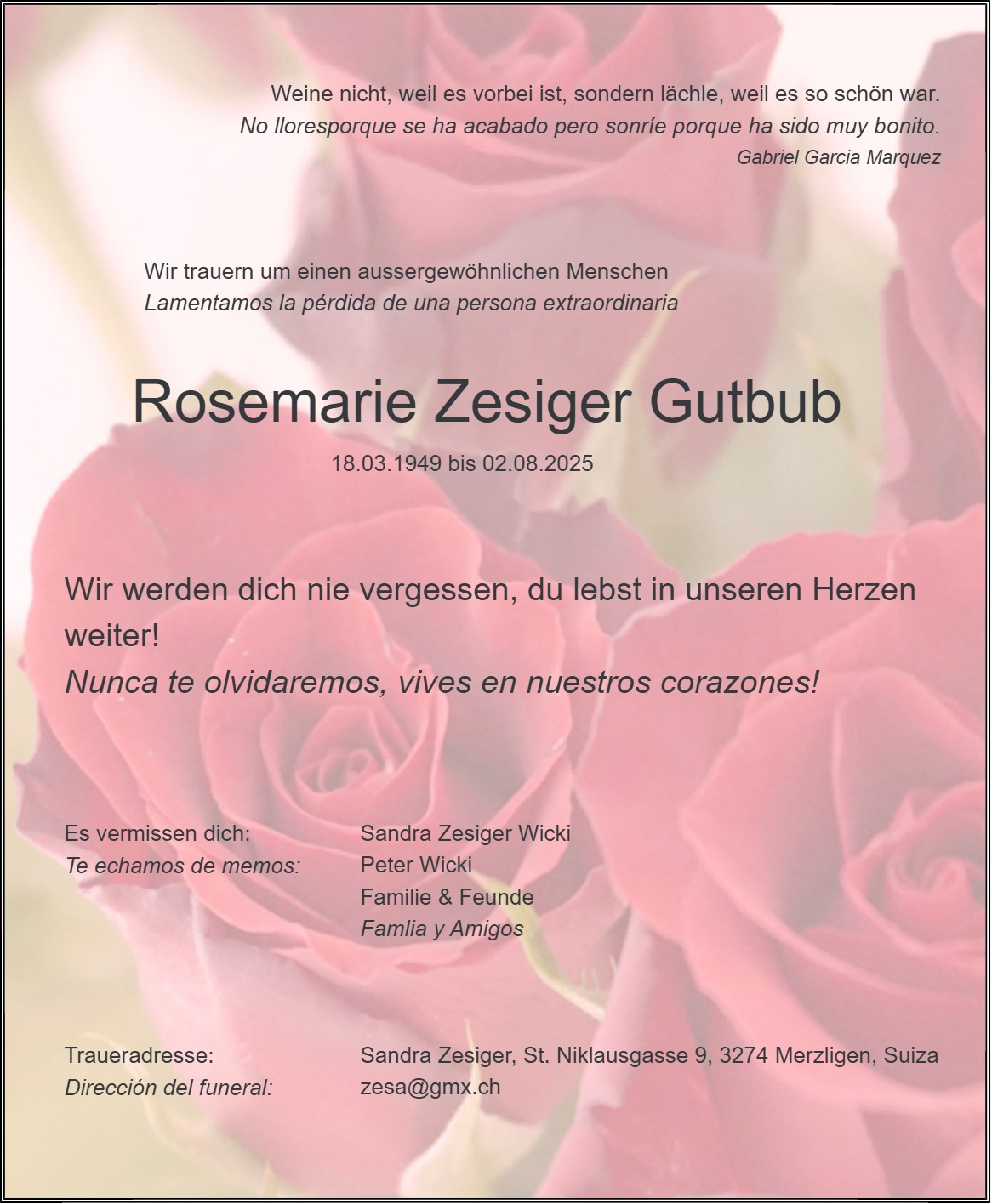 Zeitnahe Sterbeinformation auch durch Weiterleitung der Todesanzeige per E-Mail, Bild, Link oder als Ausdruck auf dem Postweg möglich.